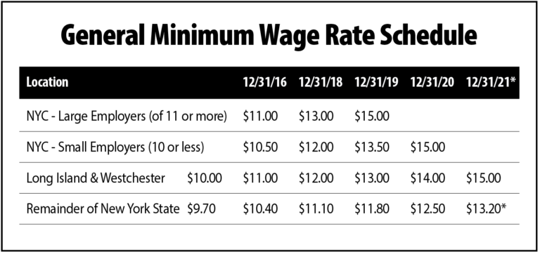 New York’s $15 minimum wage phase-in will continue with the next stage taking effect on Dec. 31 of this year. The announcement follows a required