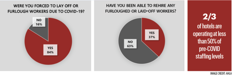 A new report from the American Hotel & Lodging Association (AHLA) indicates that 84 percent of hotels said they have laid off or furloughed workers