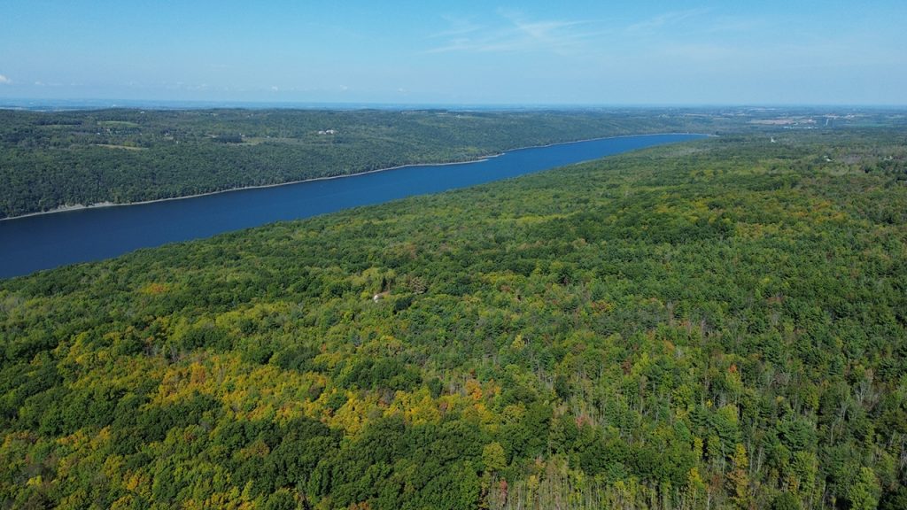 An aerial view of Hemlock Lake, a Finger Lake in Ontario County. PHOTO CREDIT: MATT SITLER VIA FINGER LAKES LAND TRUST