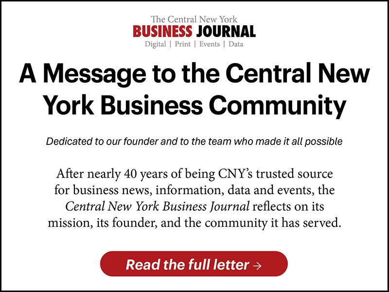 Become a Central New York Business Journal subscriber and get immediate access to all of our subscriber-only content and much more.