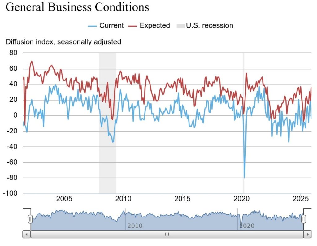The New York Fed distributes the Empire State Manufacturing Survey on the first day of each month to the same pool of about 200 manufacturing executives in New York. On average, about 100 executives return responses.