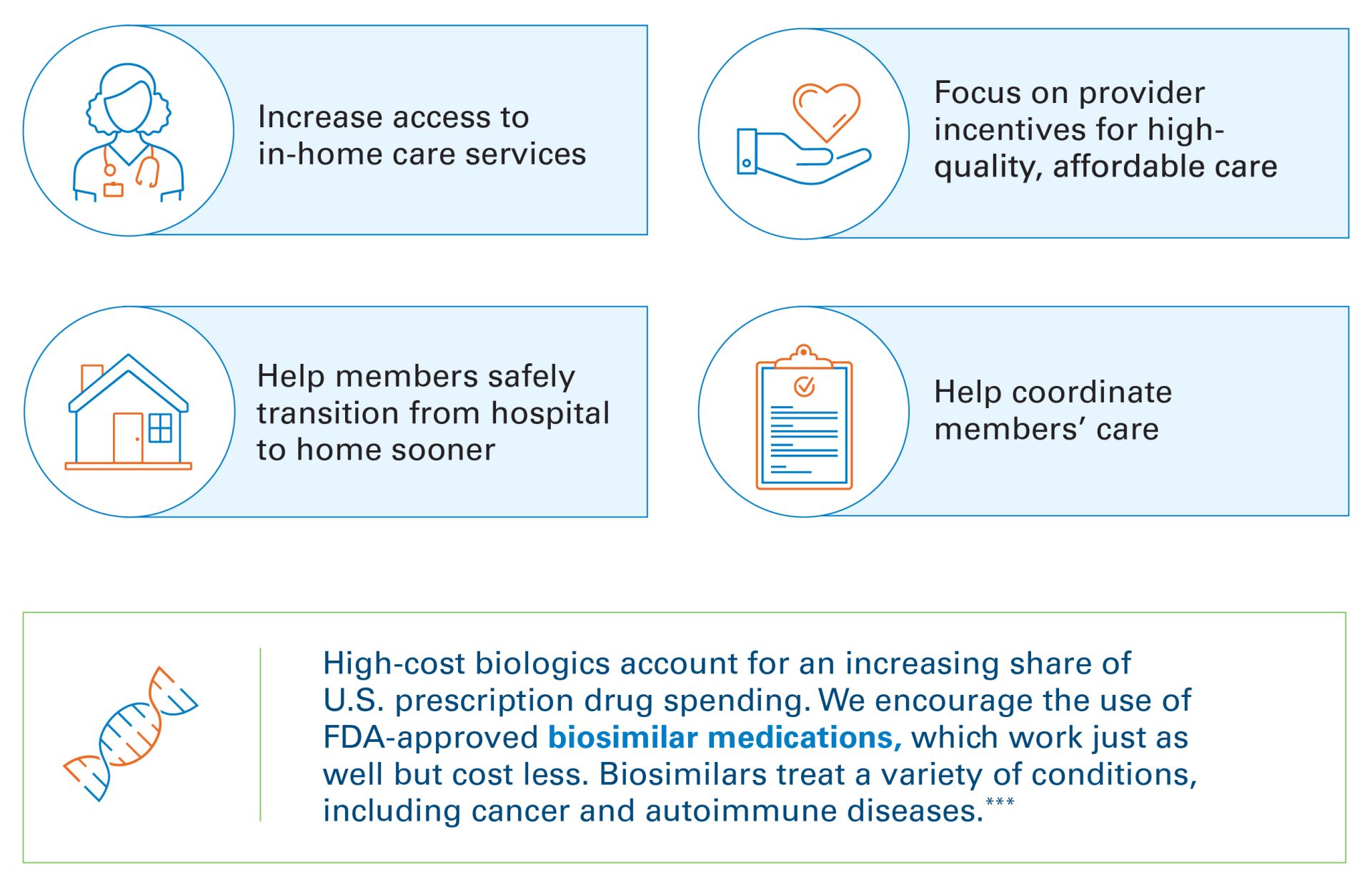Some of the ways we help members improve their health while also slowing rising costs include partnerships that: